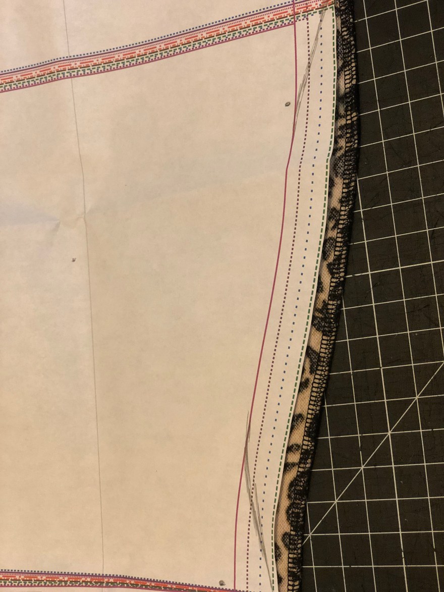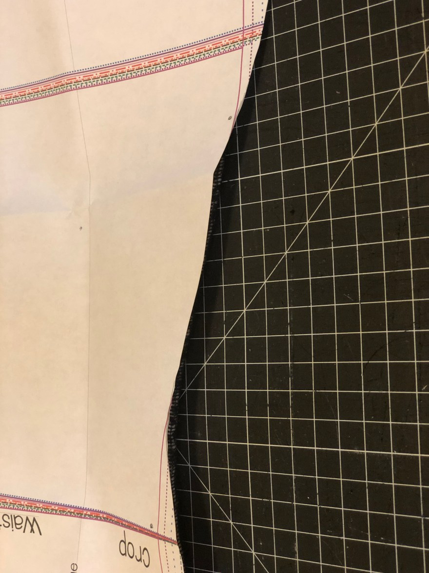 Then I take the dress off, and place it against the pattern pieces. I transfer my dots onto the pattern itself, and connect the dots!!! I try to make it smooth with no sharp turns which will make the sewing easier and the garment fit smoother once its on. DON’T CUT THE PATTERN YET. Repeat connecting the dots on your fabric so your dress has the same adjustments. Now try it on.
