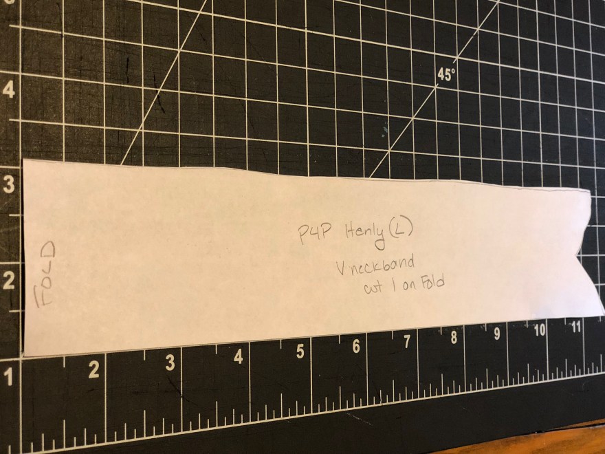 His most favorite thing is a V-Neck shirt. Unfortunately there have only been two shirt patterns that I have found that he likes, neither of these are a V-Neck though. So, rather then trying 100 million more patterns I decided to alter the neck line of one of them. The pattern I chose to work with is the Mens Henley by P4P.
