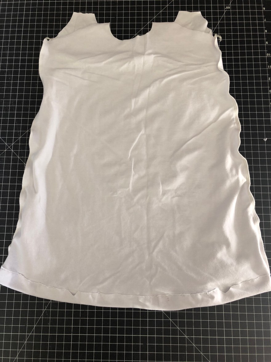 Sew the tank front side seams (similar to the pattern) all the way down. I also hemmed the bottom now too so there was less fabric to maneuver. Set aside for a moment while we make the nursing straps and lining.