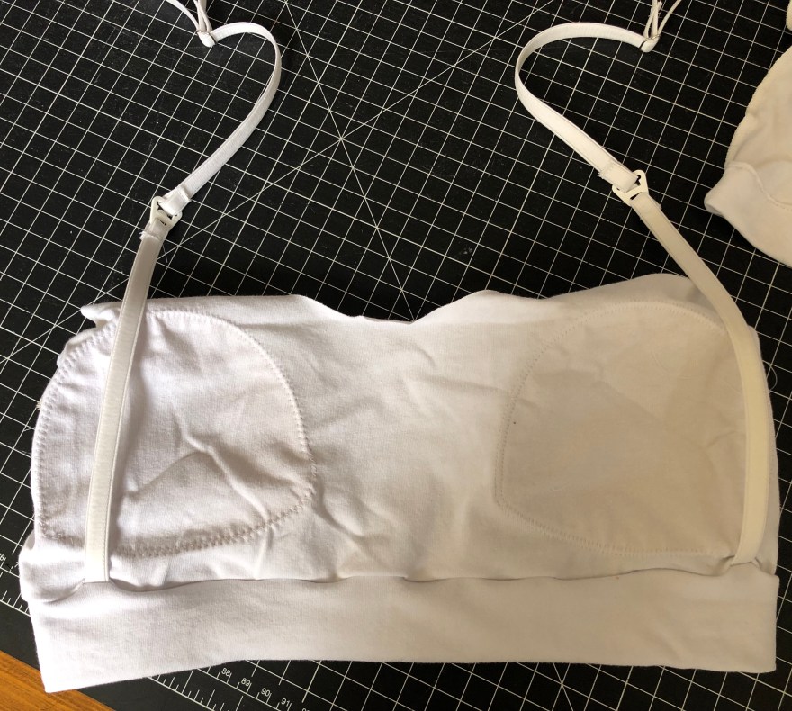 Attach the band to just the lining. Don’t forget to put in the nursing straps in-between the band and lining.