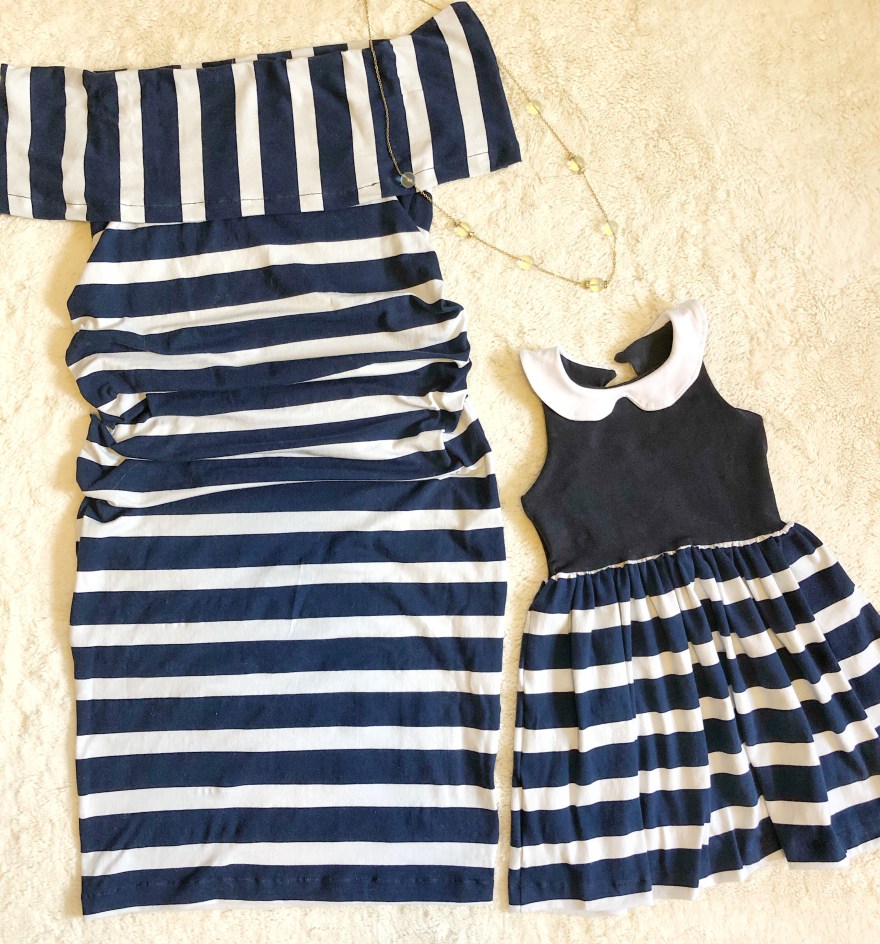 If you saw my previous post about hacking newly released Thread Fraction Spring Dress for maternity then you know that when my Little Miss saw me taking pictures in my new dress, she wanted one too! I can never resist coordinating mommy & me outfits!