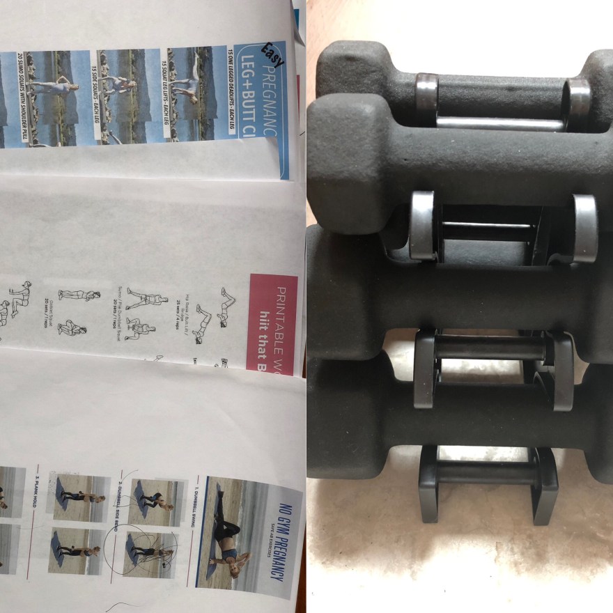 Before I get into the outfits let me first share what I’ve been doing, because I hope it helps someone. Before doing any exercise consult with your doctor, everyone’s body and pregnancy is different. This is just what has worked for me and I hope it can help someone else too. My workouts are really only about 15-30 minutes long, and I’ve just been doing it at home. Which has been great because my daughter “works out” with me and I can easily stop and tend to her as needed. I created a Pinterest Board that I would like to share with all of you. I have been rotating back and forth between doing arms one day and legs the next. I also bought this weight set for less then $25 from Amazon (and it comes with a cute stand!). So that’s it, free work out plan and a weight set for less then $25 and I’ve been able to stay in better shape through pregnancy only using 15-30 minutes a day!