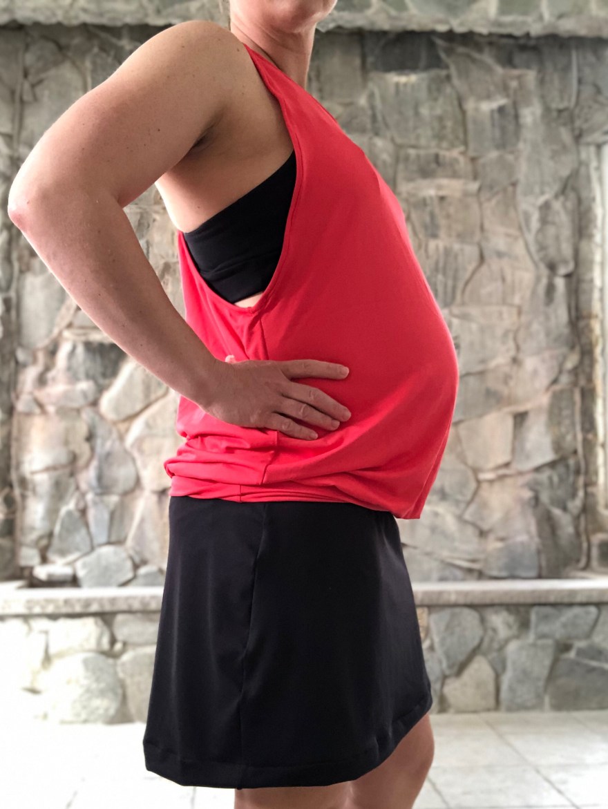 Lastly tops… I knew I wanted something that I would be able to nurse in and the Solo Tank from Greenstlye was perfect since it doesn’t need any modifications for that! The deep armcye allows it to be easily pulled to the side for nursing access. The Solo Tank does need some modifying for maternity though so I will go over the simple mod I did for that below. But lets talk fabric first: I like a lighter weight fabric for tops (especially since I’m hotter then normal while carrying The Bump). Phee has fabulous Circular knit or Tricot which I highly recommend, they always carry the best colors. I also really like Tactel from Fabric Mart but its not always in stock. When it is, I wait and check back often until they have it on sale, sometimes I can get it for $4/yard which is really unbeatable. Disclaimer they usually don’t have basic colors like black or white its usually pretty different but sometimes you can get lucky and score something epic!