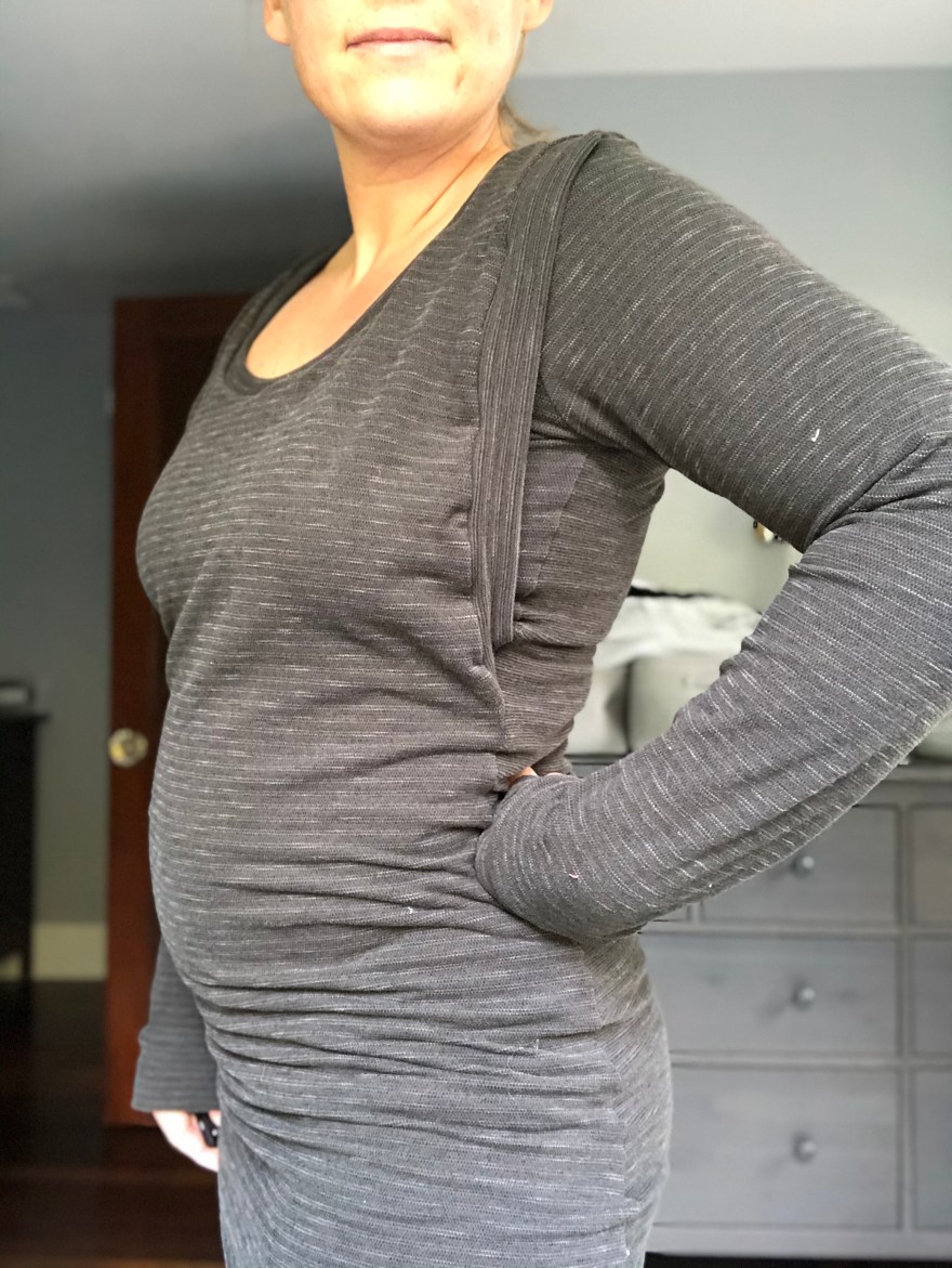 The pattern I used is the LMU (Layer Me Up) by P4P. But you could use any pattern that has sleeves like this. I may use this same technique for a hoodie one of these days… but I have a few other nursing hoodie hacks in mind first.
