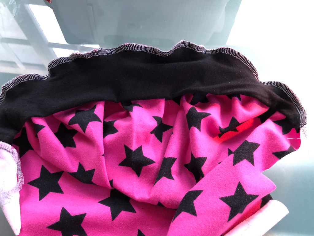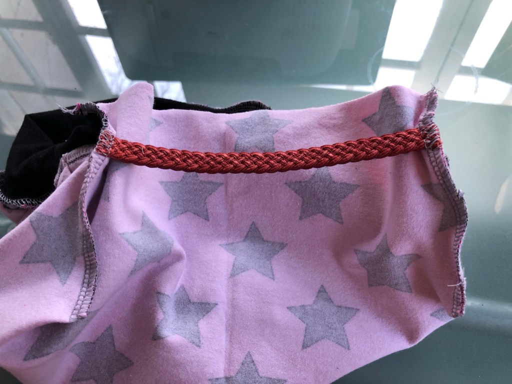 So I love this pattern, it only takes three pieces and less then 10 minutes for me to sew one. Also there is a great video (buts its 45 minutes long) which if your not busy with a 4 year old and 7 month old you may have ample times for that in this quarantine, I on the other hand love quick pics and few descriptions. So here goes… Also my 1/4 elastic has gone to sewing masks so I am using this more decorative (but still functions just the same) 1/4 elastic. Use what you have, if your elastic is bigger then just make the long straight part longer.