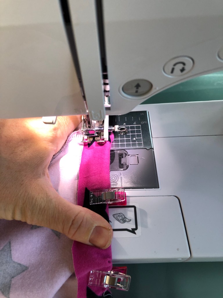 I like to add my elastic in this step as well. So on the other side from where the band meets I line up my elastic to the band. Leaving room and the bottom.