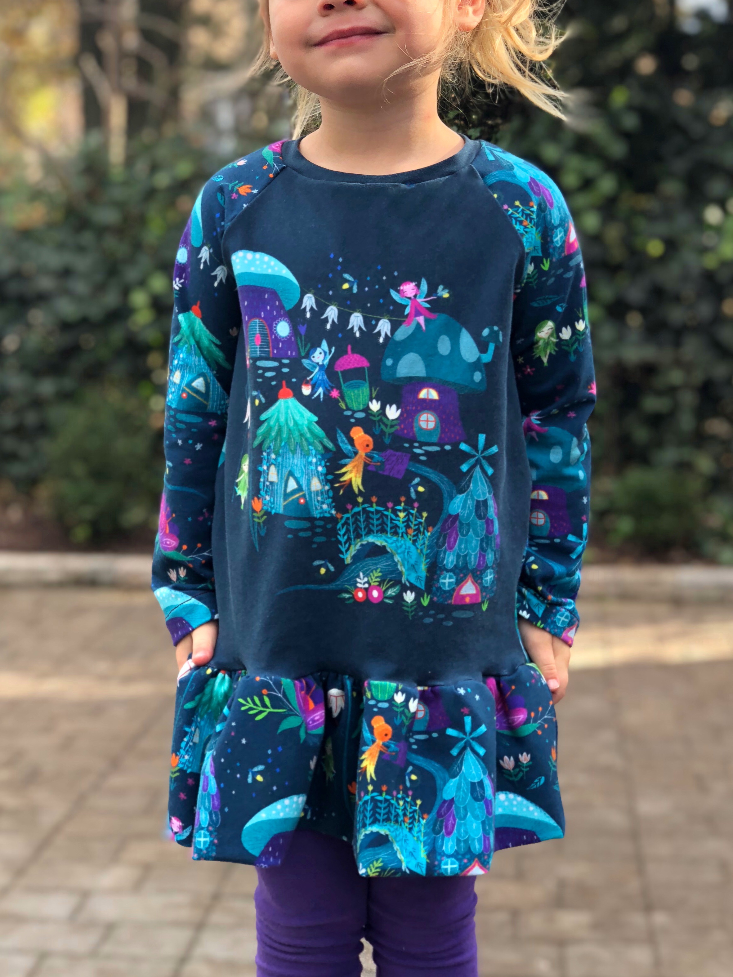 If you saw my previous post about hacking newly released Thread Fraction Spring Dress for maternity then you know that when my Little Miss saw me taking pictures in my new dress, she wanted one too! I can never resist coordinating mommy & me outfits!